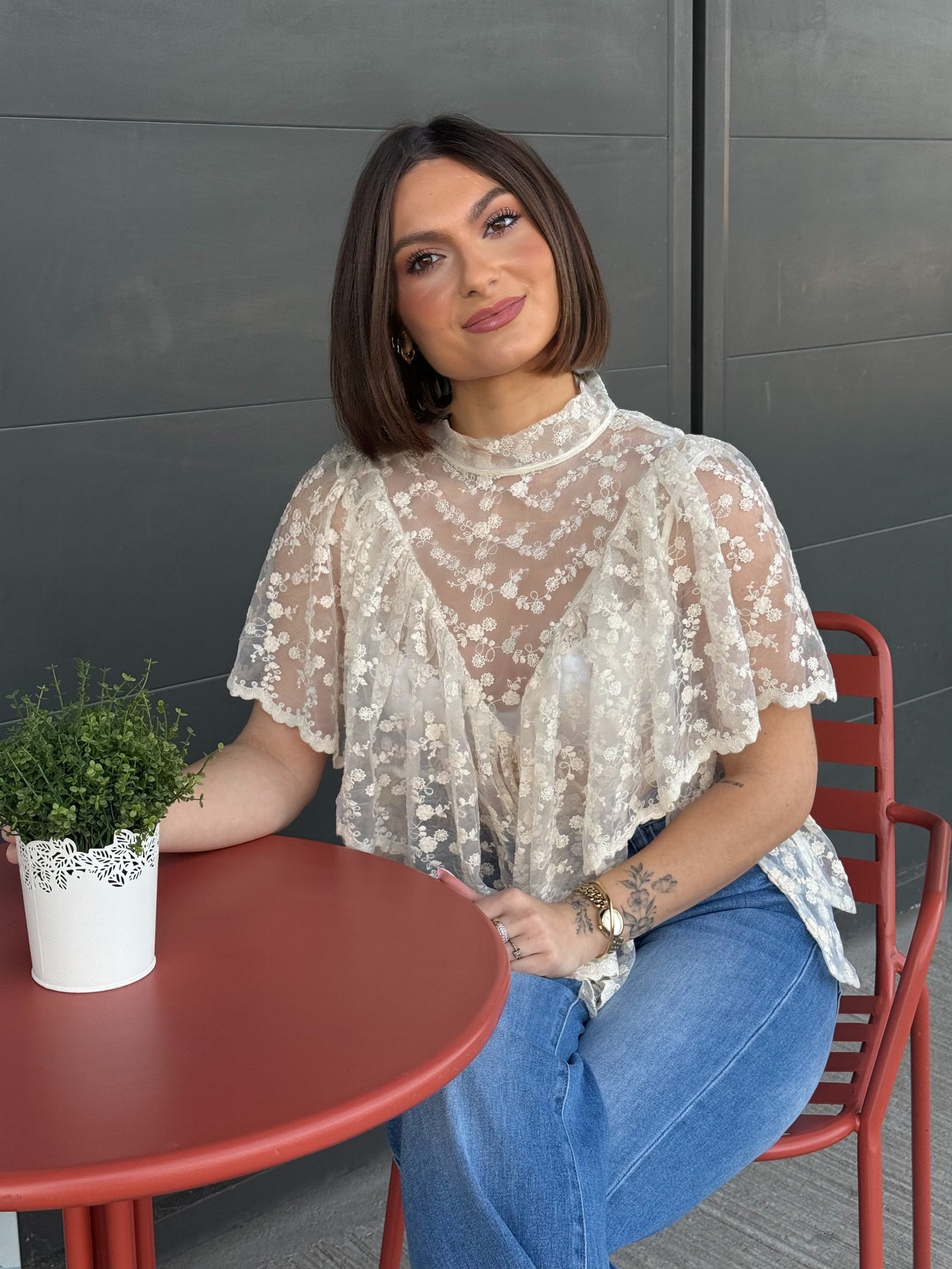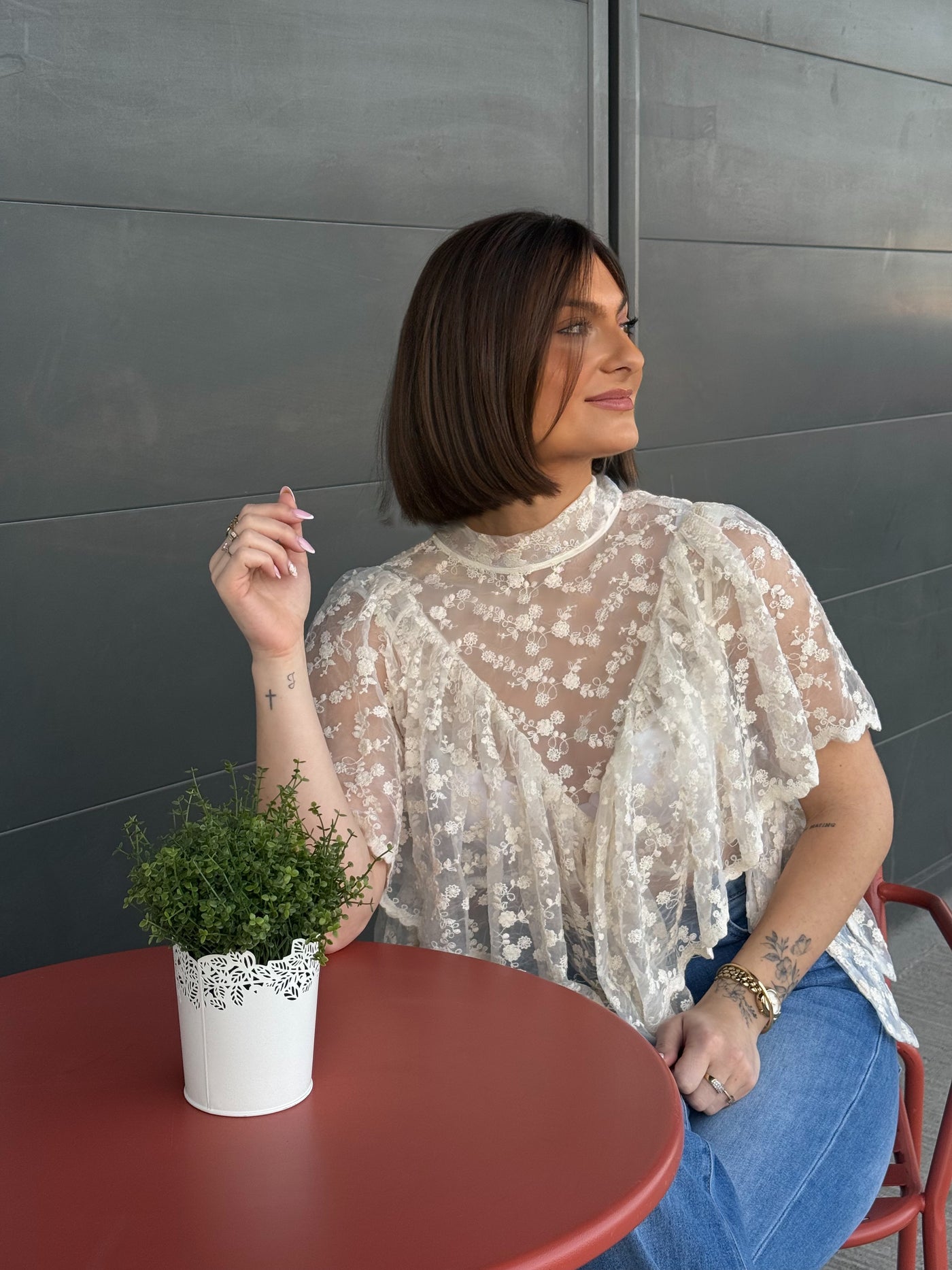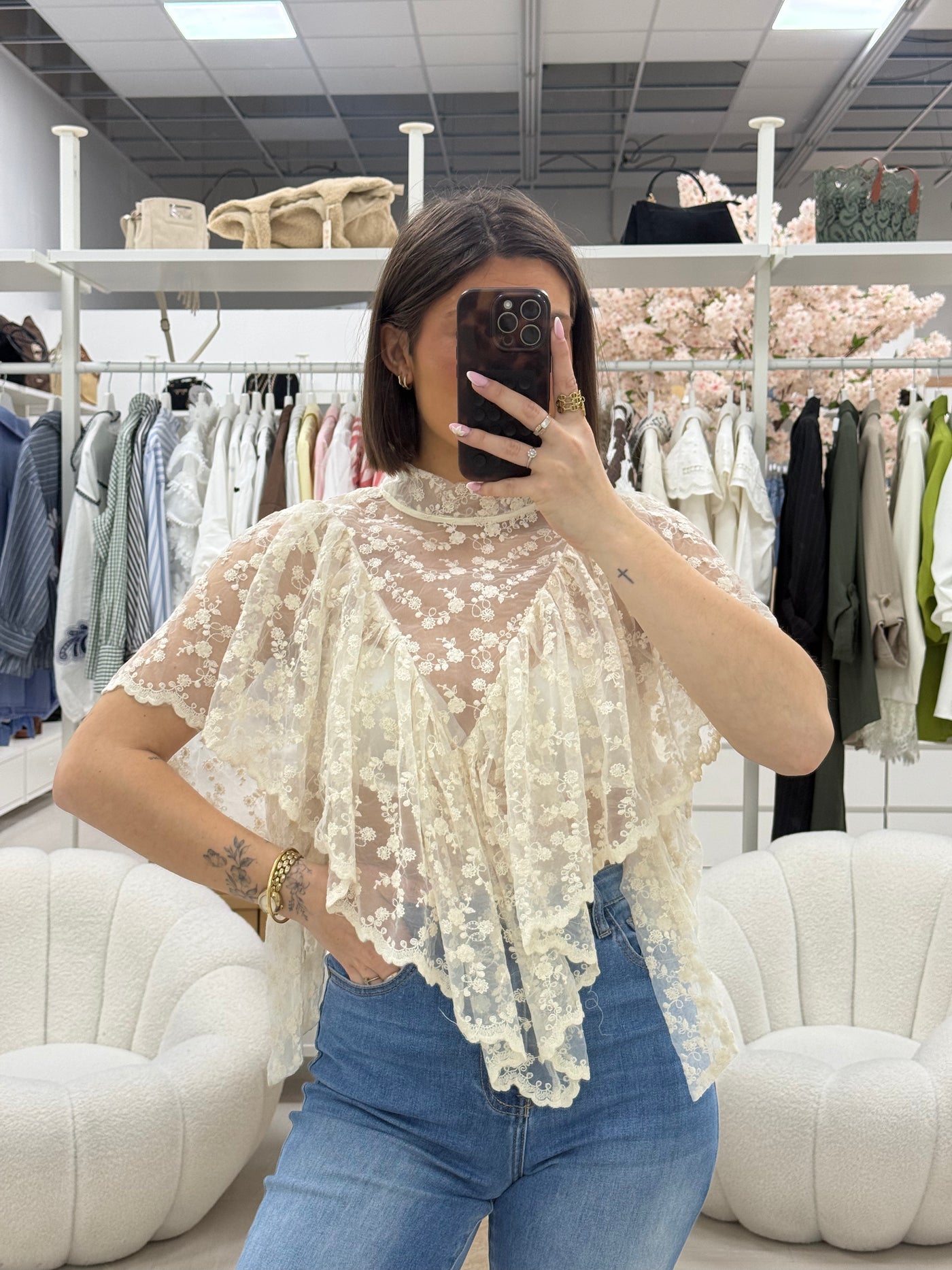 D’une élégance rare, cette blouse en voile vaporeux joue avec la transparence pour une allure aérienne et sophistiquée. Entièrement parée de broderies délicates dans des tons beige et écru, elle capture la lumière avec douceur. Une pièce d'exception, aussi raffinée que légère, qui apporte une note romantique et luxueuse à vos tenues de saison.