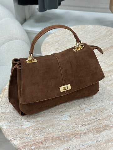 L’élégance est une question de texture avec ce sac en velours d'un marron profond. Son format moyen est le compromis idéal : assez spacieux pour vos indispensables, mais assez compact pour rester ultra-chic. Son fermoir doré massif apporte la touche de lumière finale qui fait toute la différence.