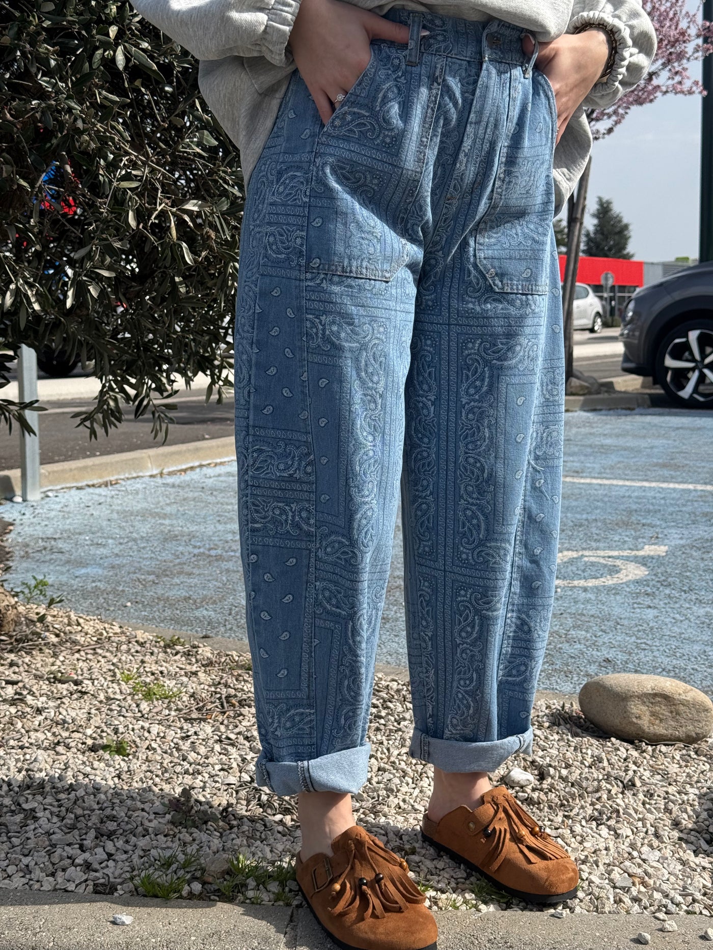 Affirmez votre style avec ce jean unique, entièrement paré de motifs orientaux aux détails envoûtants. Véritable pièce maîtresse de la collection, il mêle l’aspect brut du denim à l'exotisme des imprimés pour transformer un look simple en une silhouette sophistiquée. Son design riche et harmonieux en fait un vêtement d'exception, aussi précieux qu'original.